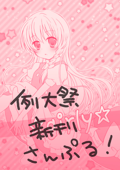 5月8日 博麗神社例大祭 : け-34b「柏処-かしわどころ-」 『☆girly☆』 当日発行 魔理沙・早苗・霊夢の3人メインで、女子力をネタにしたギャグです。 『MARISA IN WONDERLAND』 3月13日発行(イベント初頒布です) 魔理沙メインに色んなキャラが色んな変なことになってるギャグです。 当日、この本の表紙の絵柄のポスターを掲示しておりますが、イベント後廃棄予定ですので、もし貰って下さる方いらっしゃいましたらお声かけ下さい! サークル名が入っていますが、それで構わなければ~ 当日 ▽無料配布ポストカード ・・・祝☆新作自機!ということで、妖夢ポスカです^^* 髪型はうっかり前のままで描いちゃいましたw 当日、本人不在です。 なのでスケブはお受け出来ません、すみません><; ■ ■ ■ ■ ■ ■ ゲスト原稿のご連絡ですー^^ POCAPOCAさんのところの魔法少女まどか☆マギカの本にゲストとして描かせて頂きました^^ 申し訳ないことに、まどマギのオンリーイベント発行だというのに告知を忘れていまして…; 書店さんで現在お取り扱い中だそうですので、よろしければ…w とらのあな→http://www.toranoana.jp/mailorder/article/04/0020/00/73/040020007344.html4 メロンブックス→http://shop.melonbooks.co.jp/shop/list/?DA=de&MF=POCAPOCA&ST=0&G=&E=ON&CR%5B%5D=18&CR%5B%5D=15&CR%5B%5D=0