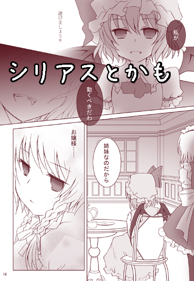 い、今更ですみません…っ; ちょっとお家の方とか、年末年始はすごーくバタバタしてたので、新年のご挨拶遅くなっちゃいました><; 年始めからショボショボですが、今年もどうぞよろしくお願いいたします^^* えっと、もう次の日曜日にまで迫っているんですが、コミトレ17参加しますー!(^▽^)ノ スペースは『W-08a』です! 予定していた紅魔館の本が間に合わなくて、例大祭に伸びます…><; 代わりに、フランちゃんとレミリアのスティックポスターを頒布致します~v コチラの絵柄です! ↓ スティックポスター2種類+ポストカードで、400円(予価)です! 何気に看板以外のポスターを作るのって初めてなので、ドキドキです…; 無駄に数を刷っちゃったので、皆さん捌けさせるのにご協力下さいねww お待ちしております~v あと、スカーレット姉妹のグッズ出しといて何ですが、魔理沙のコスプレを予定していたんですよ! でも、一緒に行くお友達に仕事入っちゃって…一人参加になっちゃったので断念しました>< コスするとなると色々手間取ったりしちゃうので…; うー…例大祭で出来たらいいなー; という訳で、一人寂しくスペースにポツン状態です。 あんまり寂しいと一人で狩りに出ちゃってると思うので、そんな時には是非声を掛けてあげて下さいww にゃー アイルーとかプーギーとか、かわゆすぅぅぅ…!!>///< あ、そうそう、既刊も持って行きます! またコミトレ前日までに現れるつもりではありますので、よろしくお願いいたしますー^^* 何かありましたら、ツイッターでリプを飛ばして頂けたら一番反応早いかな~と思いますw