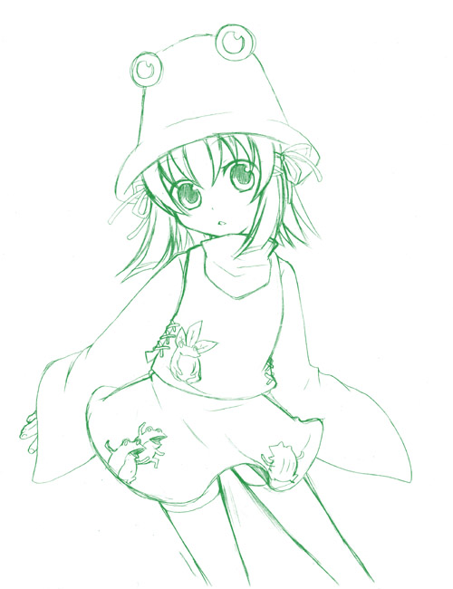諏訪子かわいいよ諏訪子!! てな訳でケロちゃんこと諏訪子を描いてみました!! あーうーかわいいよー諏訪子。 メロメロならずもーケロケロです、イミフですw 模様のカエルが若干フ○ッグスタイルっぽいとか…そんなことは気のせいなのです。 すっごい描きやすい…ボスっ娘とは思えないシンプルさですよね。 自力ではお目にかかれないので、プレイ動画を見てますw また今度色塗ろうっとv
